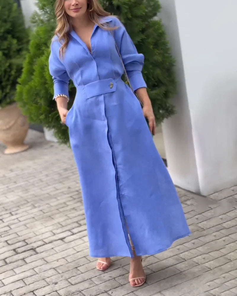 CRISTINA – Vestido Largo con Solapa, Elegancia Atemporal